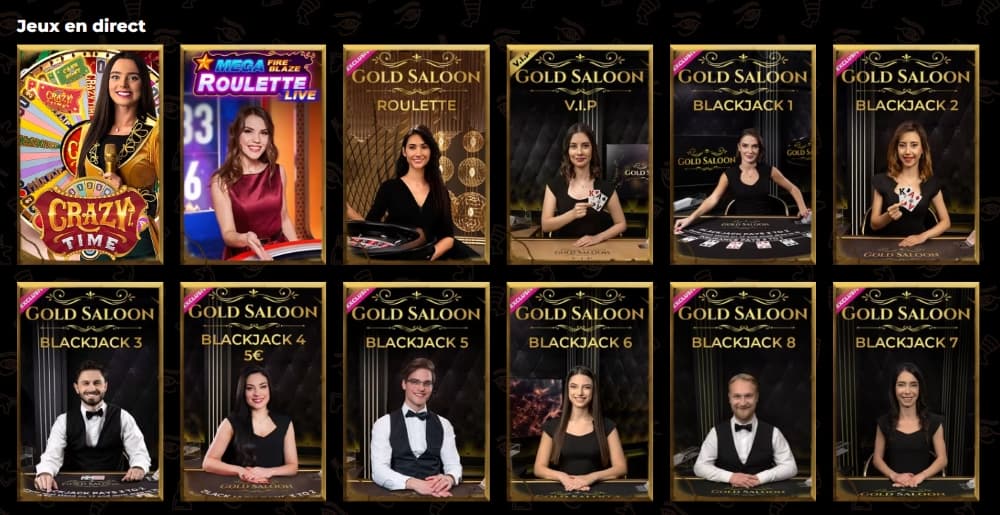 La section de casino en direct d'AmunRa améliore l'expérience de jeu en offrant des jeux retransmis en direct. Cette fonctionnalité vise à reproduire l'atmosphère d'un casino physique, offrant aux utilisateurs un environnement de jeu immersif et interactif.
